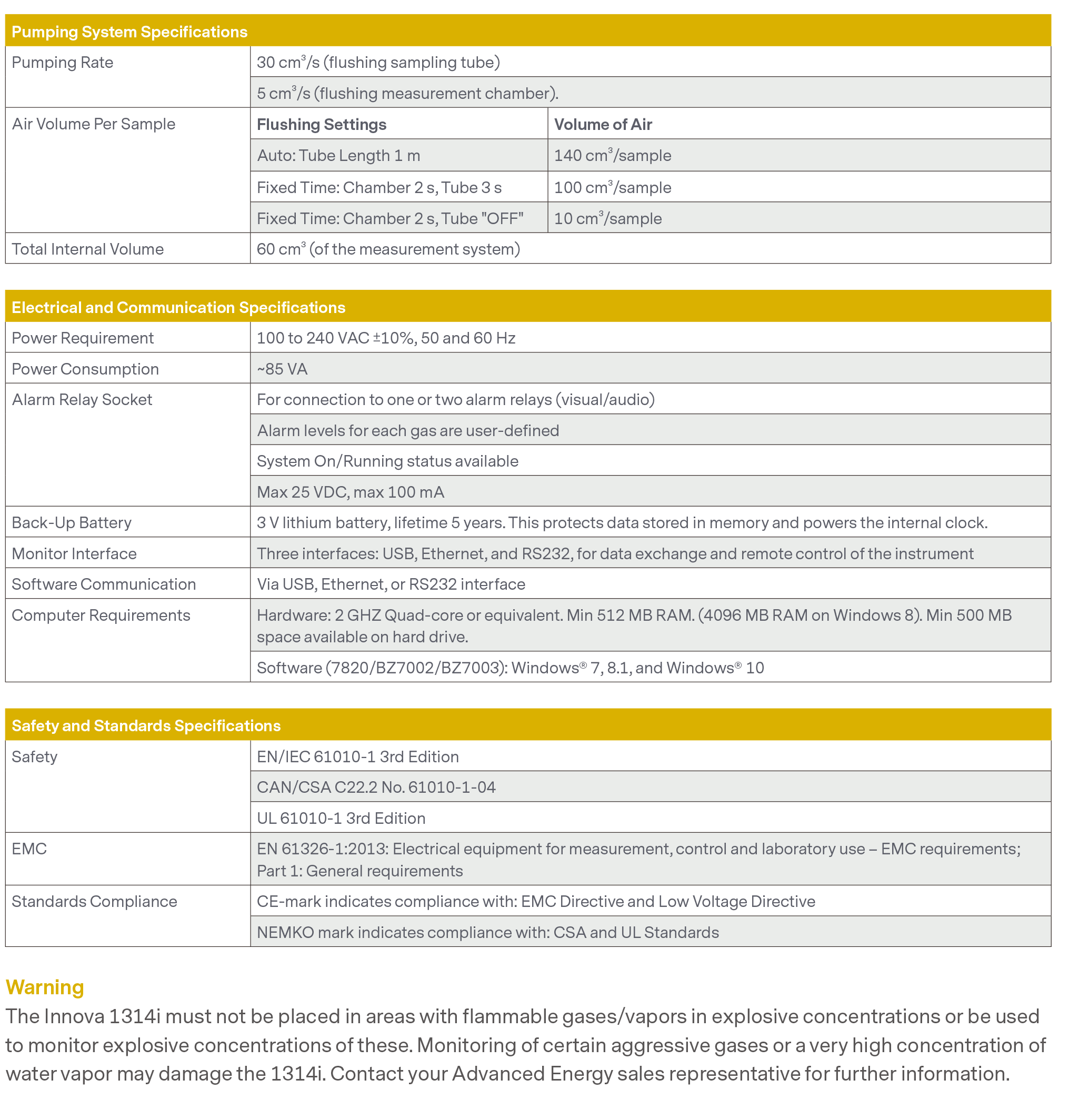 1314 監測儀設有四組標準的連接端口:IEEE488 ,RS-232,USB和TCP/IP。這允許1314監測儀整合在用戶的自動系統內。此外,1314監測儀亦設有內置氣泵,可在遠達50 米外抽取樣本。